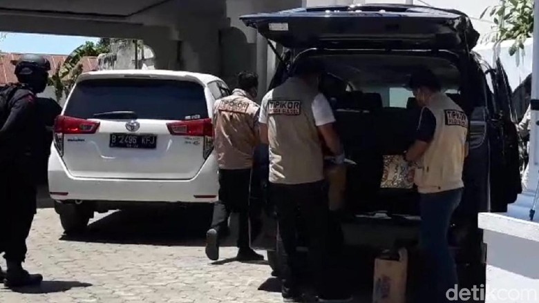 Polisi menggeledah rumah jabatan Wakil Bupati Bone Ambo Dalle dan sejumlah kantor pemerintah di Kabupaten Bone. (Muhammad Nur Ab…